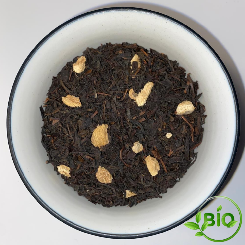Thé noir de Ceylan parfumé et agrémenté de morceaux de racine de gingembre.